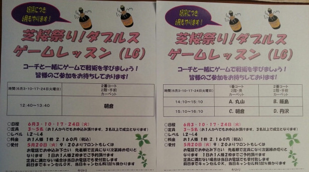 芝桜祭りダブルスゲームレッスン! 4月限定企画でしたが、ご好評いただいております事と皆様のゲームへの意識アップとして引き続き継続しています。